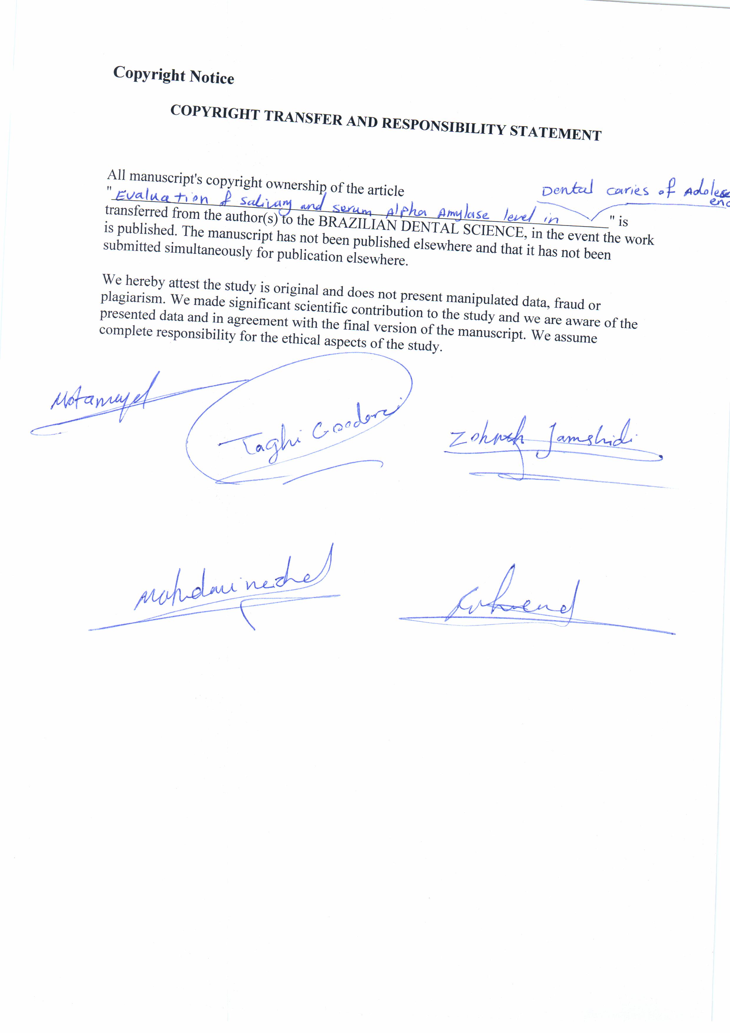 Alpha–amylase; Dental caries; Saliva; Serum.