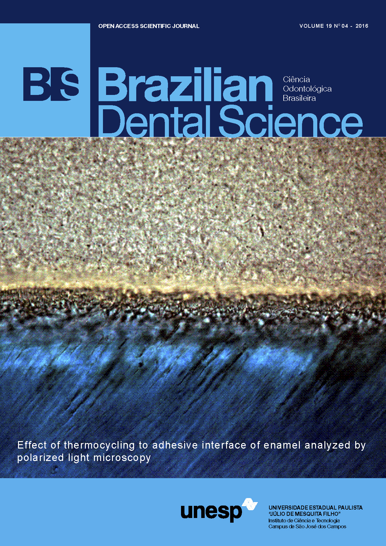Brazilian Dental Science uses the Creative Commons (CC-BY 4.0) license, thus preserving the integrity of articles in an open access environment. The journal allows the author to retain publishing rights without restrictions.