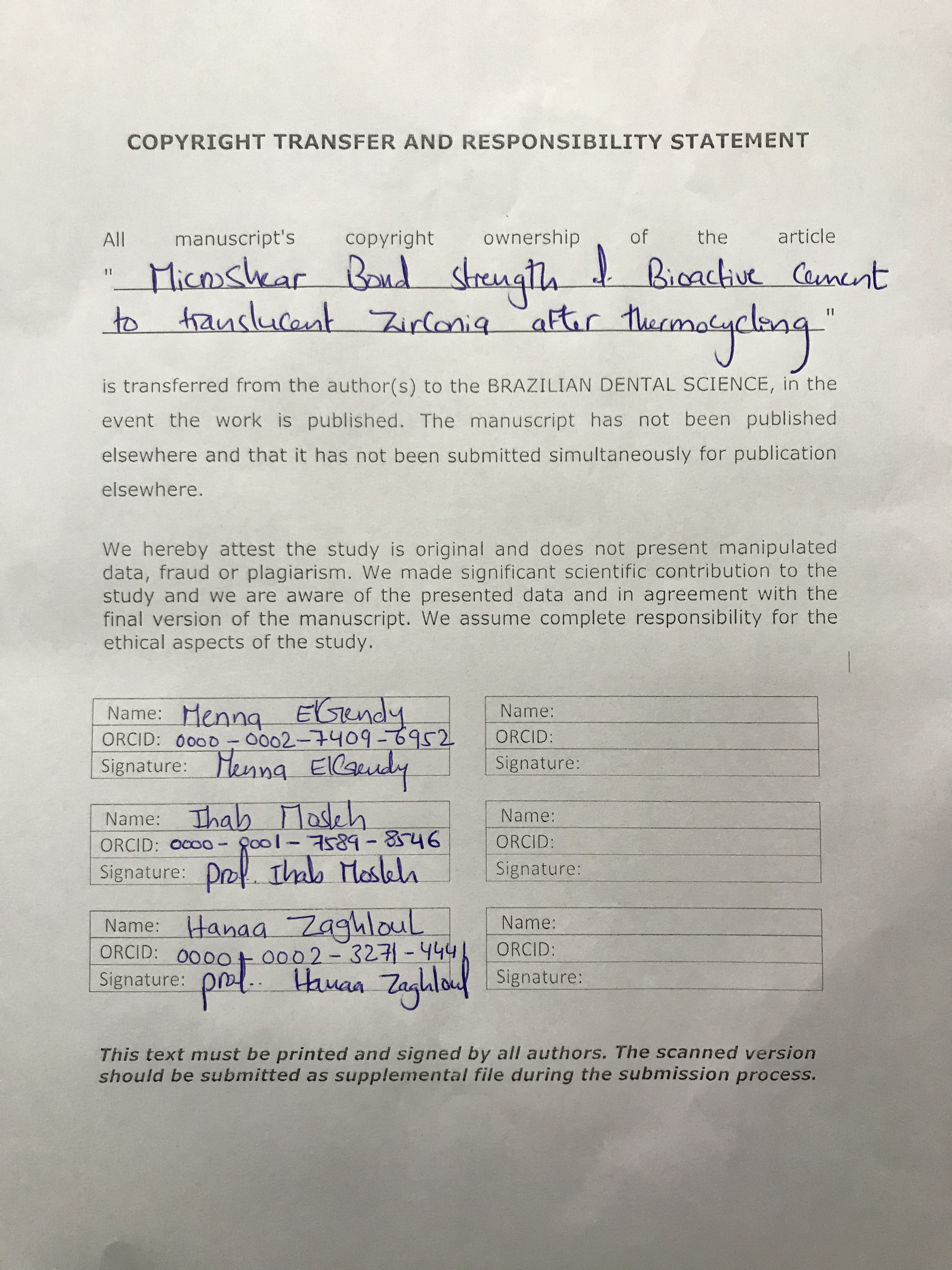 Bioactive cement; Micro-shear bond strength; Resin cement; Translucent zirconia.