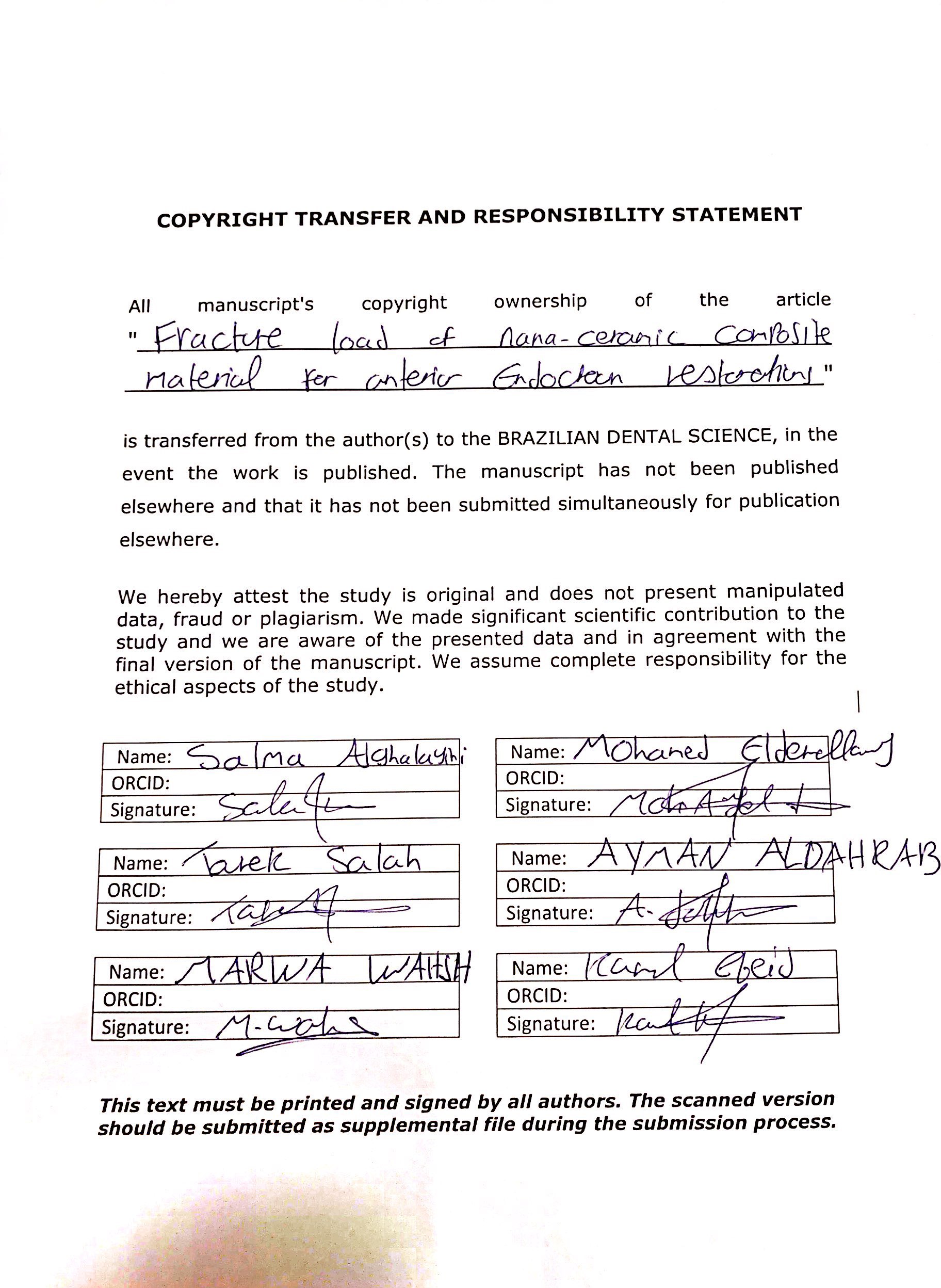 Brazilian Dental Science uses the Creative Commons (CC-BY 4.0) license, thus preserving the integrity of articles in an open access environment. The journal allows the author to retain publishing rights without restrictions.
